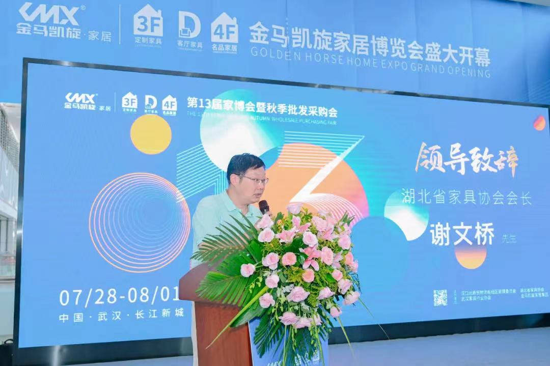 湖北省家具協(xié)會會長謝文橋先生在開幕式中講到,金馬凱旋家居是華中家具行業(yè)的引領(lǐng)者,一向敢為人先、銳意創(chuàng)新,家博會就是金馬凱旋家居主動求變的杰作。經(jīng)過多年的運作和發(fā)展,一路攻堅克難,取得了現(xiàn)今的規(guī)模和影響力,尤其顯得難能可貴。希望金馬凱旋家居集團能夠繼續(xù)帶領(lǐng)家具行業(yè)同仁一起,探索新的營銷模式,借鑒先進的經(jīng)營理念,共同推動湖北和華中家具產(chǎn)業(yè)的轉(zhuǎn)型和發(fā)展。