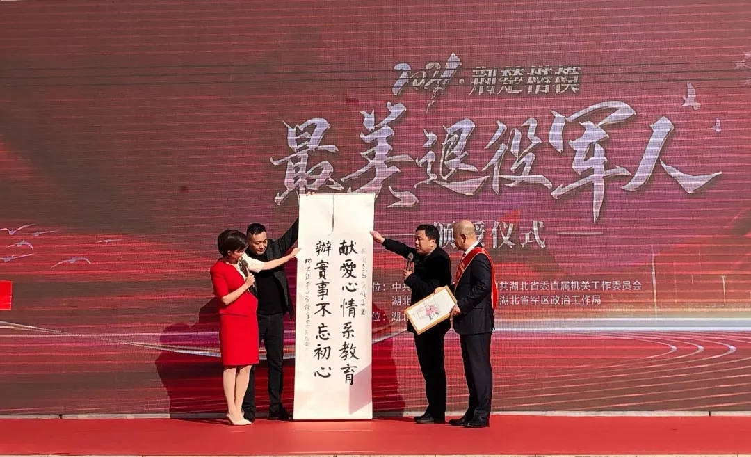 本次頒授儀式上,湖北省退役軍人事務(wù)廳黨組成員、省退役軍人服務(wù)中心黨委書記、主任周發(fā)福鄭重宣讀了2021年度“荊楚楷模·最美退役軍人”的表彰決定,湖北省退役軍人事務(wù)廳黨組書記、廳長周振武,武漢市退役軍人事務(wù)局黨組書記、局長馬仁釗,武漢市黃陂區(qū)副區(qū)長張國金,為肖凱旋董事長頒授最美退役軍人獎(jiǎng)杯、證書及綬帶,并向肖董事長表示熱烈祝賀。